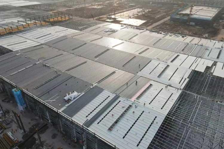 山東遠(yuǎn)東偉業(yè)集團(tuán)重慶龍興SE項(xiàng)目部所負(fù)責(zé)的總裝一車間屋蓋總面積8.54萬平方米,橫向?qū)挾葹?68米,縱向長(zhǎng)度為512米。